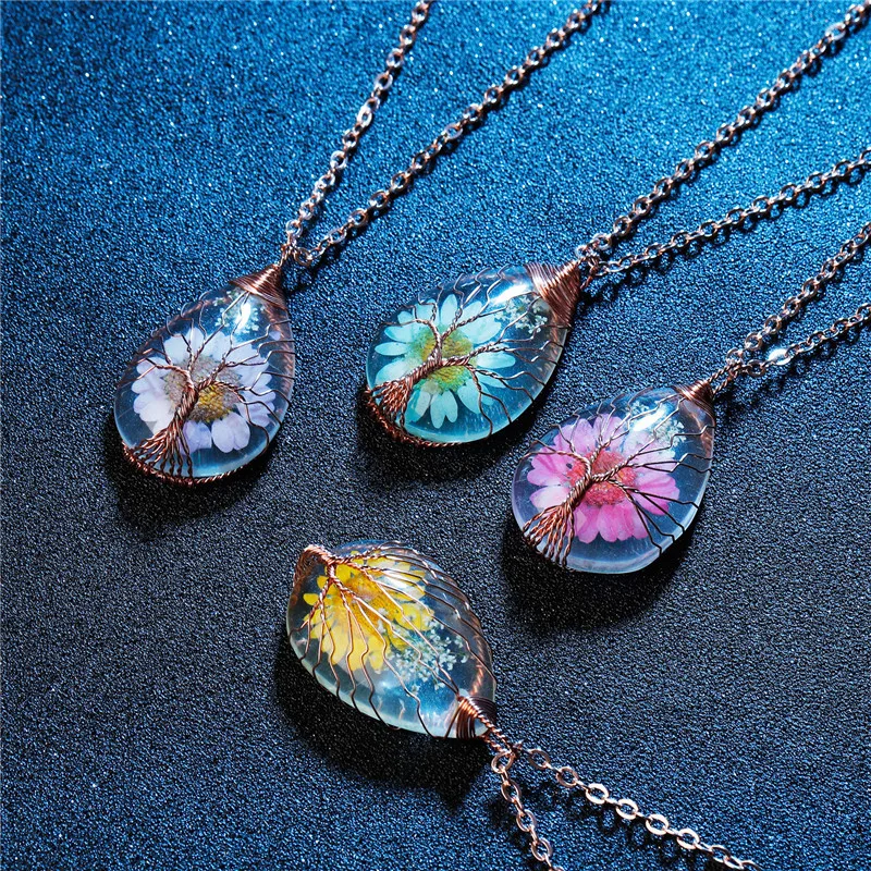 Classical Natural Flowers Handmade Dried Flower Necklace Pendants