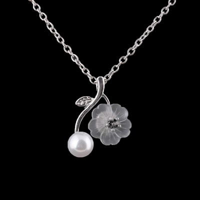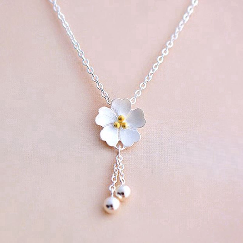 Flower Necklace Cherry Blossoms Silver Pendant Chian Necklaces