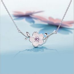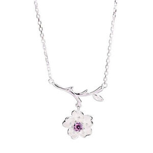 925 Sterling Silver Cherry Blossom Necklace Fashion Summer Jewelry