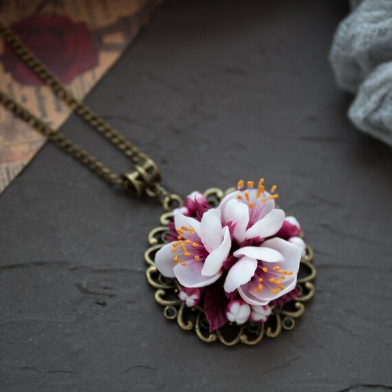 Cherry Blossom Pendant Spring Wedding Jewelry Cute Necklace Etsy