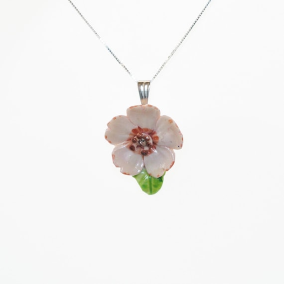 Porcelain Pink Cherry Blossom Pendant With Sterling Silver Etsy