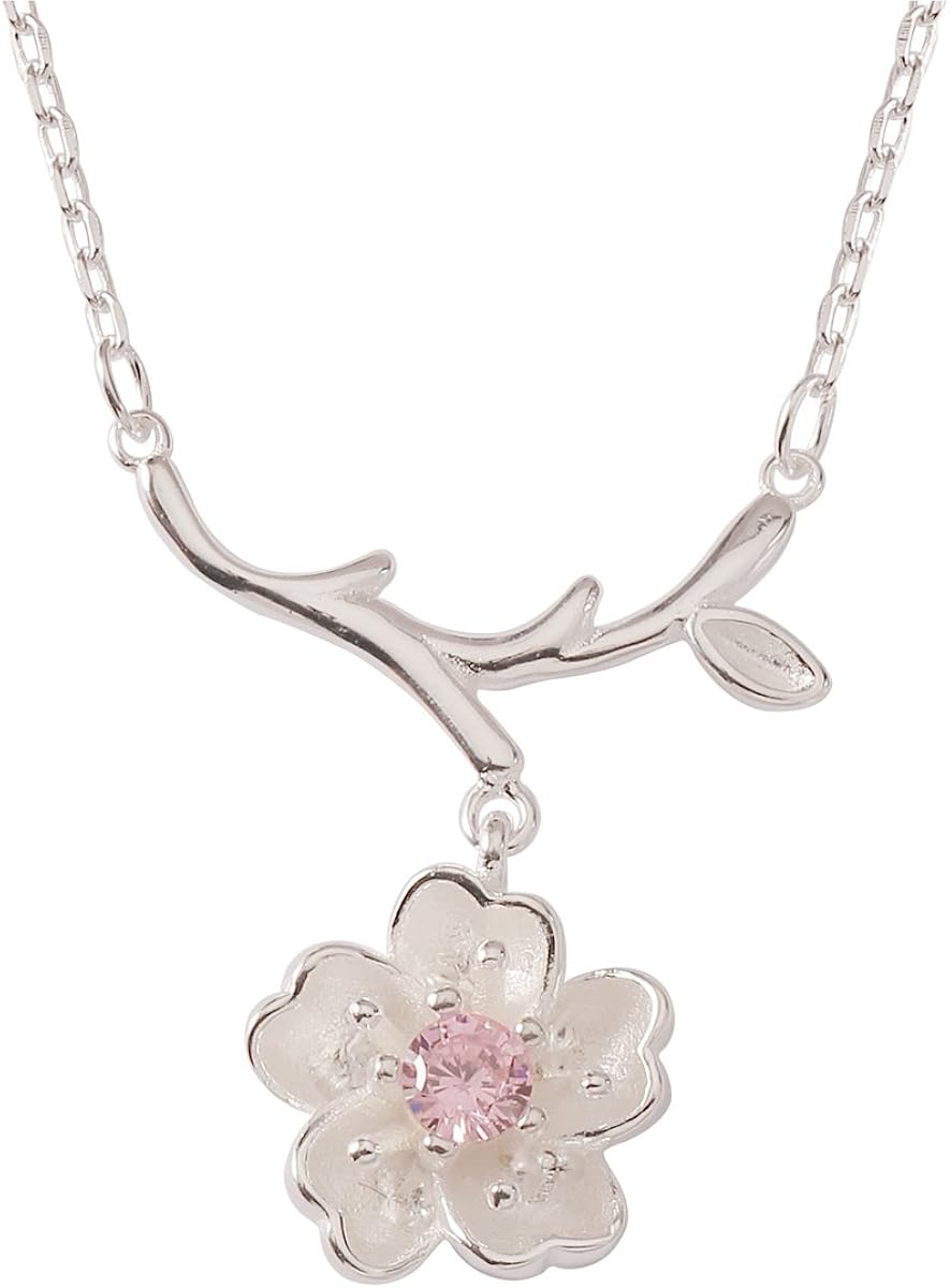 Vova 925 Sterling Silver Sakura Cherry Blossom Necklaces