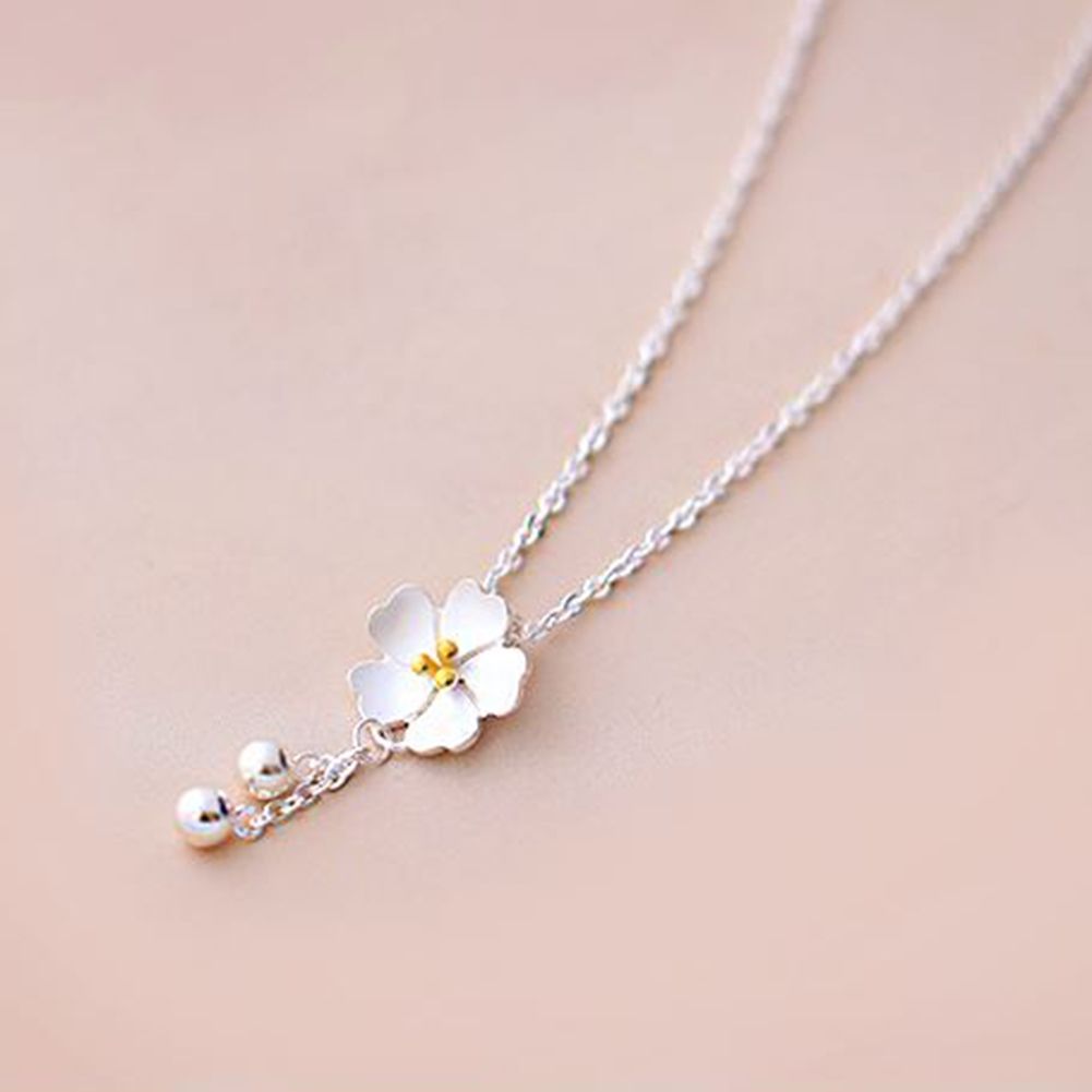 Silver Color Cherry Blossom Necklace 925 Sakura Flowers Necklaces