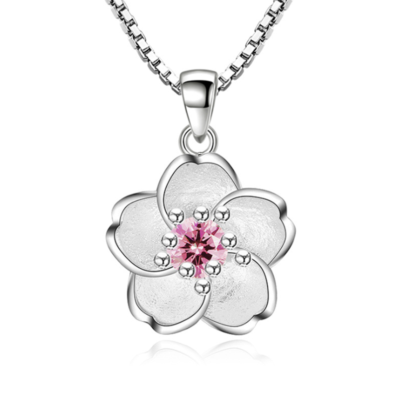 925 Sterling Silver Sakura Pendant Necklace For Women Romantic