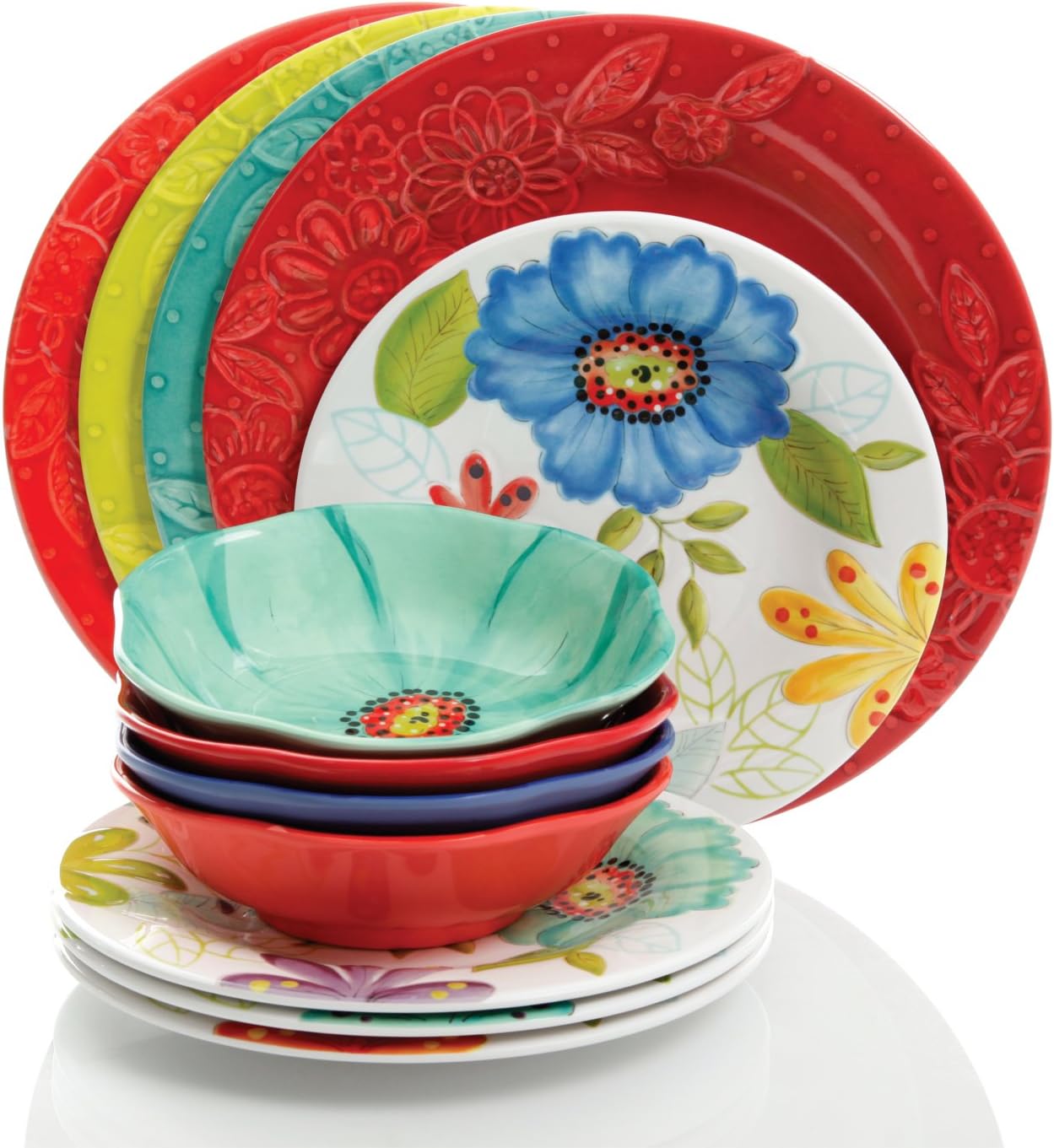 Laurie Gates Stoneware 12pc Conjunto Para Servir Pratos E Talheres