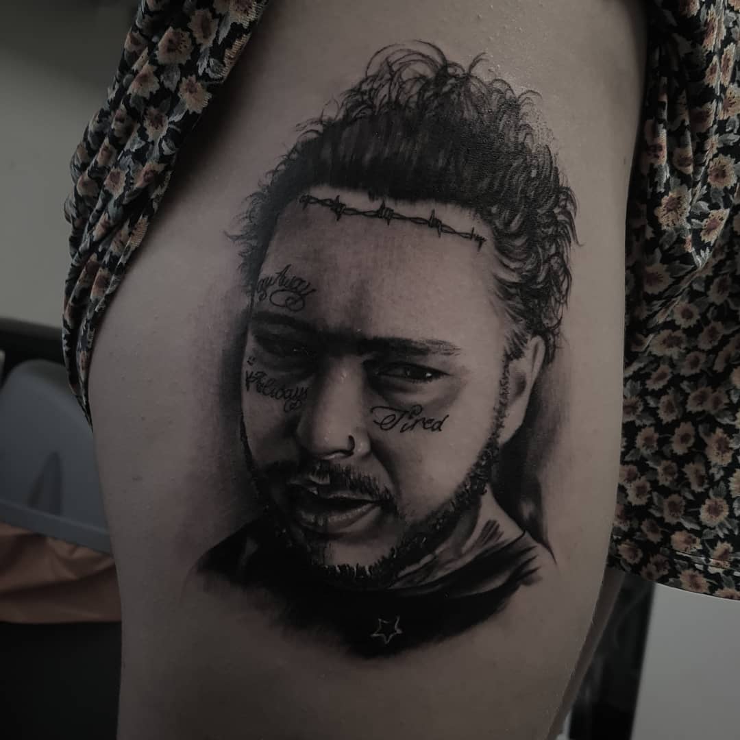Tattoo Uploaded By Seven Foxes Tattoo Post Malone Portrait